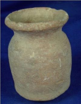 | Description / विवरण | Terracotta pot with cylindrical body, oval base and wide mouth. The rim is thick and averted. |