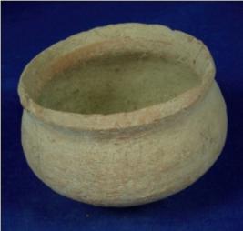 | Description / विवरण | Terracotta pot with flat base, round spherical body, wide mouth with low neck and thick averted rim. |