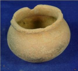 | Description / विवरण | Small terracotta pot with flat circular base and round body. The mouth is wide and rim is thick and averted. |