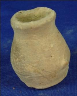 | Description / विवरण | Small terracotta pot having round body. The base is flat, mouth is narrow and rim is thick and averted. |