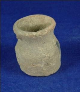| Description / विवरण | Terracotta vessel - small pot having round body, flat and circular thick and averted rim. |