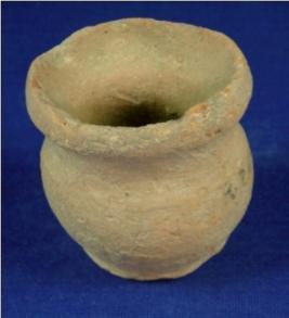 | Description / विवरण | Terracotta vessel - a pot with round body, a flat circular base, The mouth is broad with a thick, flat and averted rim. |