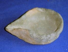 | Description / विवरण | Handmade, ill fired, terracotta lamp with flat base, deep depression body and projected rim. The projection, part is to put the flick. The rim is partially chipped off. |