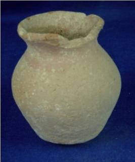 | Description / विवरण | Terracotta vessel - a pot with a round body, a narrow flat base, and wide mouth. pot is thick, averted and partially broken. |