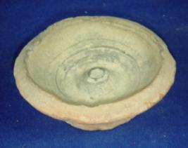 | Description / विवरण | Coarse fabric, ill fired, crudely finished, terracotta lid with flat and round base with string marks, flayered body, with circular incised lines both the inner and outer surface, carinated lines on the rim and shallow depression with broken knob |