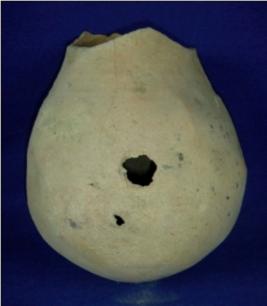 | Description / विवरण | Coarse terracotta- pot with round oval base, bulbous body with close striation marks, but the portion above the low neck is broken. |