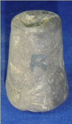 | Description / विवरण | Terracotta Games men, with flat circular base with a deep depression in the top. |