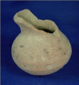 | Description / विवरण | Coarse terracotta pot with flat circular base, bulbous body, high neck and thick and averted rim The mouth is narrow and half portion of neck and rim is broken. |