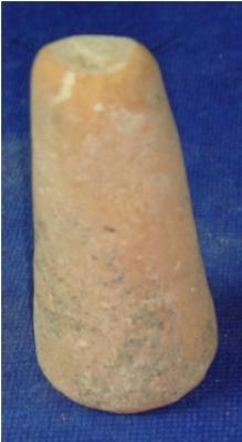 | Description / विवरण | Terracotta Games men, with flat circular base and plain surface. |