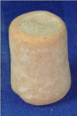 | Description / विवरण | Terracotta Games men, with flat circular base and plain surfaces. |