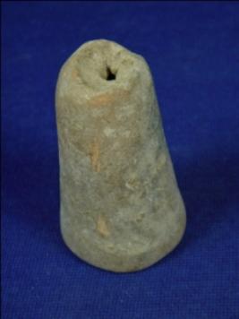 | Description / विवरण | Conical, plain terracotta Games men with one end flat and circular and the other end is broken. |
