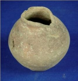 | Description / विवरण | Semi fine terracotta pot with narrow neck, featureless rim, bulbous body and flat circular base, striation marks are prominent in the lower part of the body. |