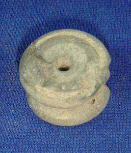 | Description / विवरण | Terracotta bead, in the shape of spindle whirl with a perforated hole in the centre. |