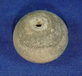 | Description / विवरण | Terracotta bead, betel nut shape with a perforated hole in the centre. |