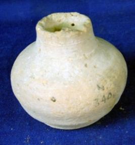 | Description / विवरण | Terracotta tiny vessel- pitcher with flat circular base, corrugated bulbous body, high neck and featureless rim. |