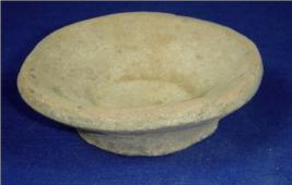 | Description / विवरण | Terracotta plate with shallow depth in centre, wheel marks are seen at the base which is flat, circular and footed. The rim is slightly raised upward. |