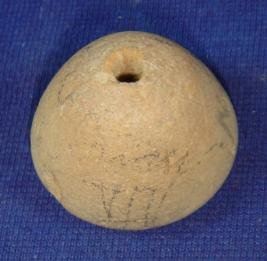 | Description / विवरण | Terracotta bead, betel nut shape with a perforated hole in the centre. It has a depression at one end. |