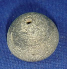 | Description / विवरण | Terracotta bead, betel nut shape with a perforated hole in the centre. It has a depression at one side. |