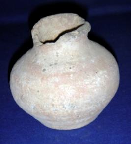 | Description / विवरण | Terracotta pot, with broken averted rim, high neck, round and flat, circular base having hole at centre. |