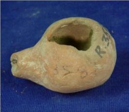 | Description / विवरण | Terracotta Rattle, hollow round with small handle. |