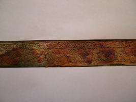 | Description / विवरण | Silk trimming, embroidered, red ground. Pattern-large and small blue flowers with yellow and green spots. |