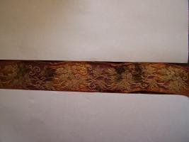 | Description / विवरण | Silk trimming, embroidered, red ground. Pattern-green leaves and grapes. |
