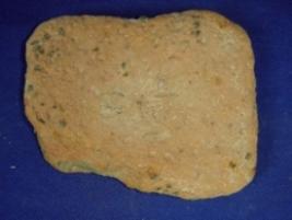 | Description / विवरण | fragment of terracotta tablet with rough surface at edges and smooth inside. Pebbles are prominent. It is broken from a side. It was probably used as a scrubber. |