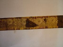 | Description / विवरण | Silk trimming, embroidered, yellow ground. Pattern-white plants, with leaf-shaped white flowers. |