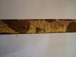 | Description / विवरण | Silk trimming, embroidered yellow ground. Pattern-white plants with leaf shaped white flowers. |