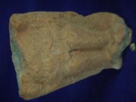 | Description / विवरण | Terracotta human figurine, only the lower part of the body from waist is visible, hands are partly seen. The figure is adorned with anklets and feet are missing. Most probably it is a male figurine. |