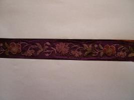 | Description / विवरण | Silk trimming, embroidered, purple ground. Pattern-a running scroll of white and pink flowers and green leaves. |
