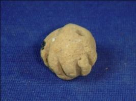 | Description / विवरण | Spherical terracotta bead with a hole through its diameter to pass the string. There are marks of incised lines all over the body. |