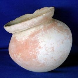| Description / विवरण | Well made, terracotta pot, having averted rim, with slightly broken edges, round body with close striation marks and round base, clay incrustation all over. |
