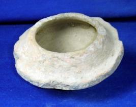 | Description / विवरण | Terracotta vessel- bowl, ill fired, coarse, thick fabric having feature less rim, broken circular projection at body and round base. Clay incrustation all over. |