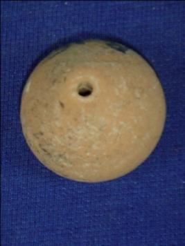 | Description / विवरण | Terracotta bead, betel nut shape with a perforated hole at the centre. |
