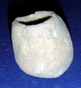 | Description / विवरण | Ill fired, hand made terracotta pot, it is crudely finished, hand impression one visible on the surface, there are incised circular lines all over the body, featureless rim and rounded base. |