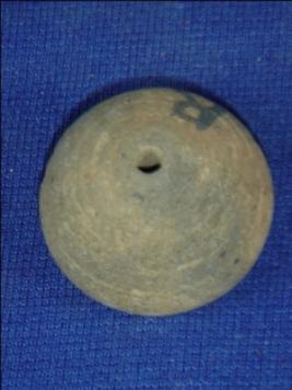 | Description / विवरण | Terracotta bead, betel nut shape with a perforated hole at the centre. |