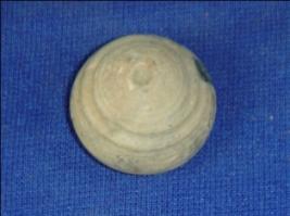 | Description / विवरण | Terracotta bead, betel nut shape wheel marks are prominent on body having a perforated hole at the centre. |