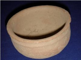 | Description / विवरण | Coarse terracotta pot with an oval base, cylindrical body, which is carinated towards upper part and a thick and averted rim. The mouth is broad. |