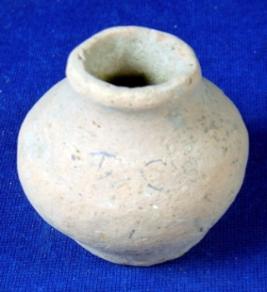 | Description / विवरण | Terracotta tiny vessel- pitcher with flat circular base, bulbous body, low neck with thick and averted rim. |