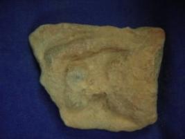 | Description / विवरण | Terracotta female figurine, only chest to waist portion is visible in low relief, her hands are partly seen which are resting in thigh. The breasts are prominent. |