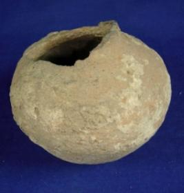 | Description / विवरण | Coarse, well fired pot, base rounded bulbous body and rimless mouth. |