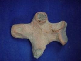 | Description / विवरण | Terracotta human figurine, the hands from elbow and body below waist is missing. Its features are not clear. Naval and nose is only prominent |