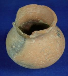 | Description / विवरण | Coarse, well made, ill fired pot having rounded base, bulbous body, low neck with averted rim, wide mouth. |