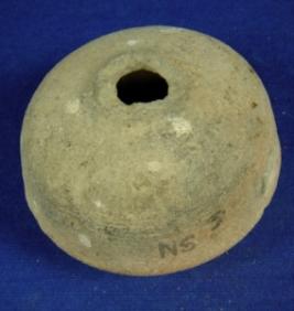 | Description / विवरण | Coarse, ill fired miniature pot, rounded base partial bulbous body having narrow mouth broken upper part. |