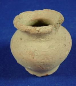 | Description / विवरण | Plain, coarse terracotta vessel- pot with averted rim which is partly broken, low, broad neck, bulbous body and flat circular base. |