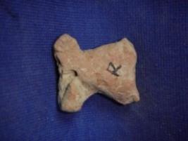 | Description / विवरण | Tiny terracotta human figure, the legs, left hand is missing while the right hand is folded on the chest. An incised hole is seen on the chest and the head is missing. |