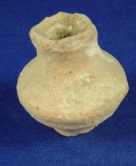 | Description / विवरण | Plain, coarse terracotta vessel - pot, with partly featureless broken rim, carinated body with close striation marks on lower part of the body and flat circular base. |