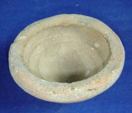 | Description / विवरण | Terracotta, coarse vessel - deep bowl, with featureless, flaring rim and footed, circular, flat base. The interior has sparse striation marks. It is ill fired as the core is black. |