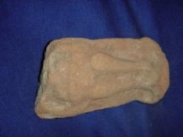 | Description / विवरण | Terracotta human figurine in low relief, in standing position, body is missing from waist. A part of hand & legs are prominent. |